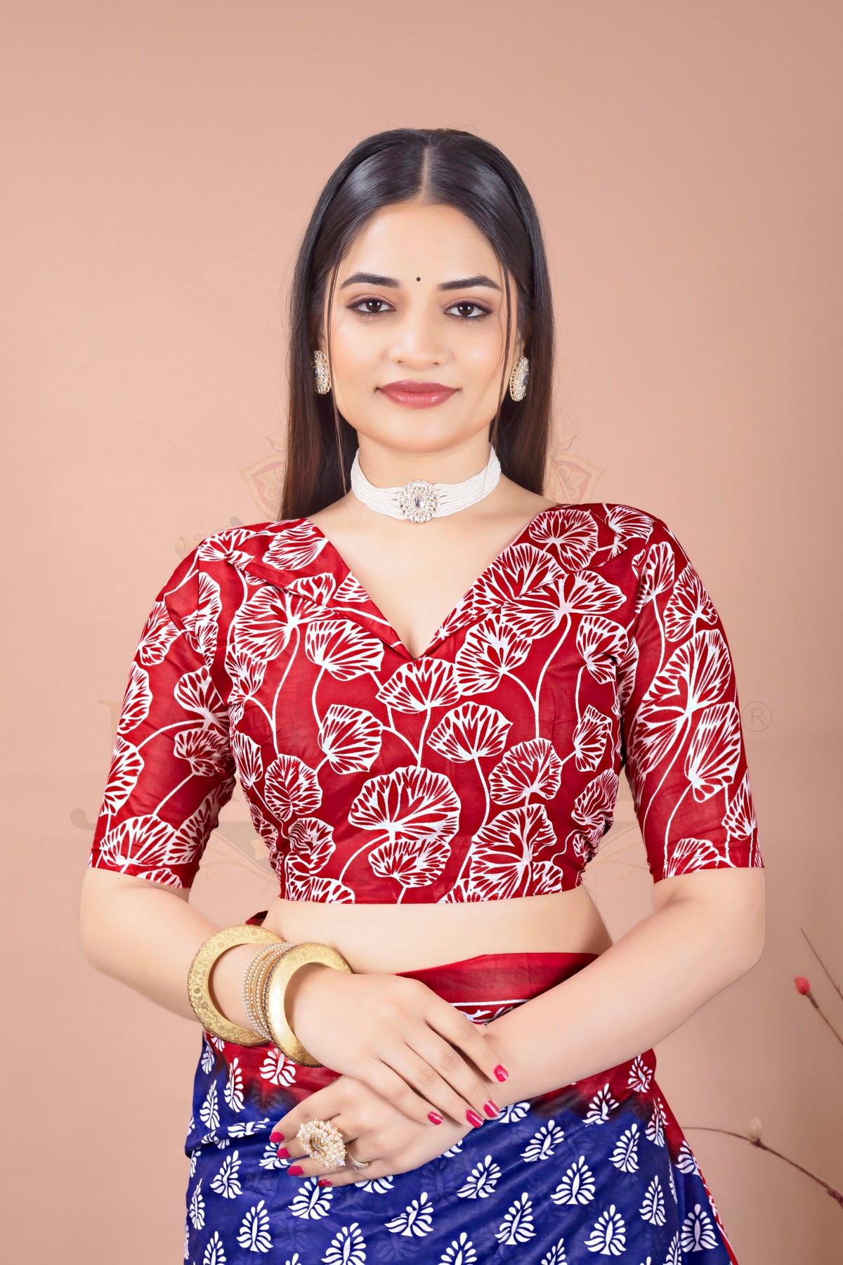 Crafted from premium cotton and printed in our own warehouse, this saree offers unmatched comfort, breathable fabric, and timeless design. Finished with care and packed after quality checks for a perfect drape, every time.