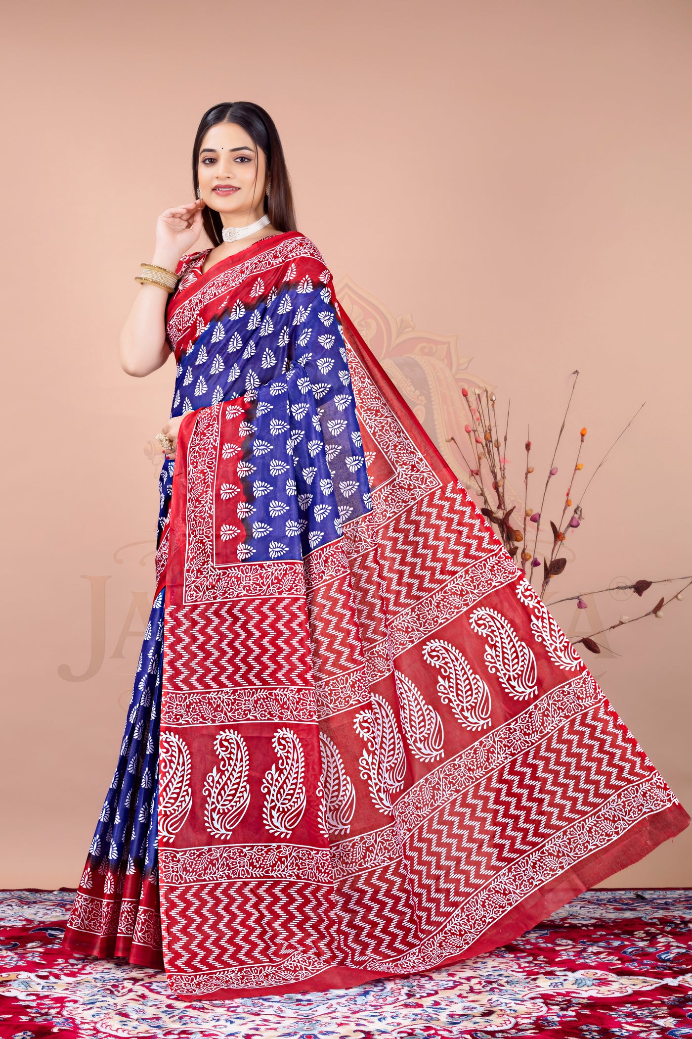 Our sarees are made from premium-quality cotton, which is soft, breathable, and comfortable for all-day wear. Cotton is ideal for daily use as well as special occasions.