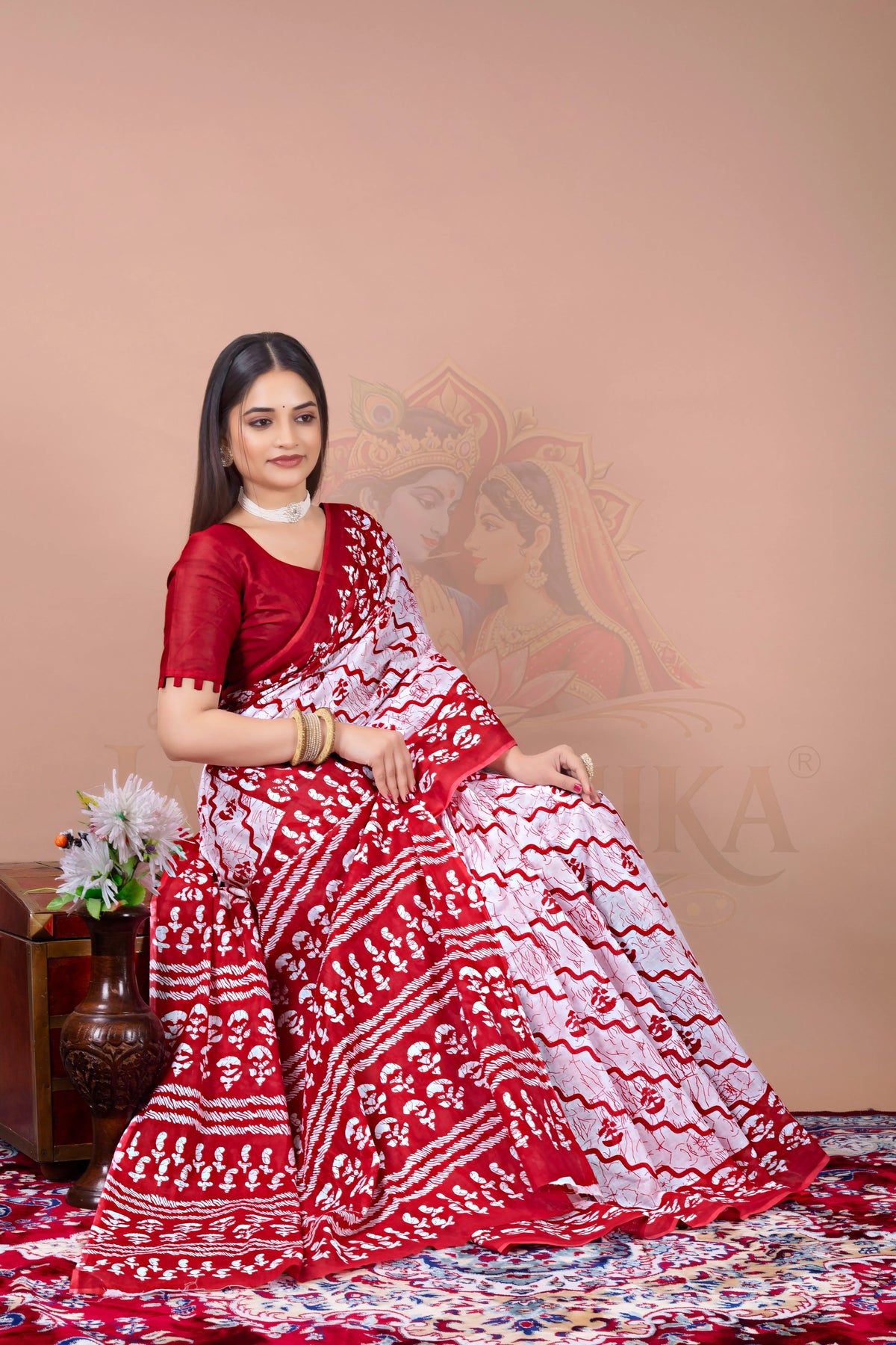 Red Batik Cotton Printed Saree Jay Radhika Textile