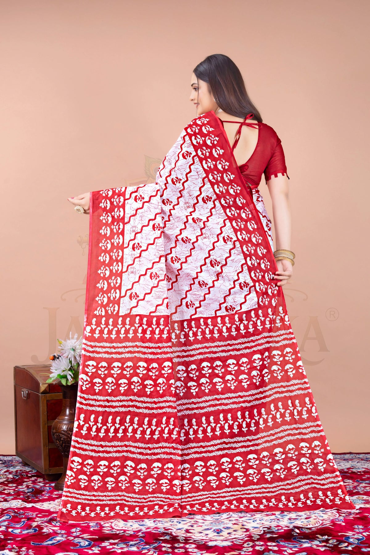 • Saree Color : Red, White