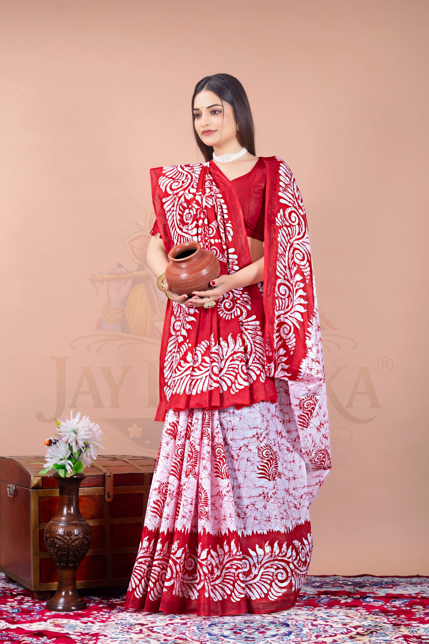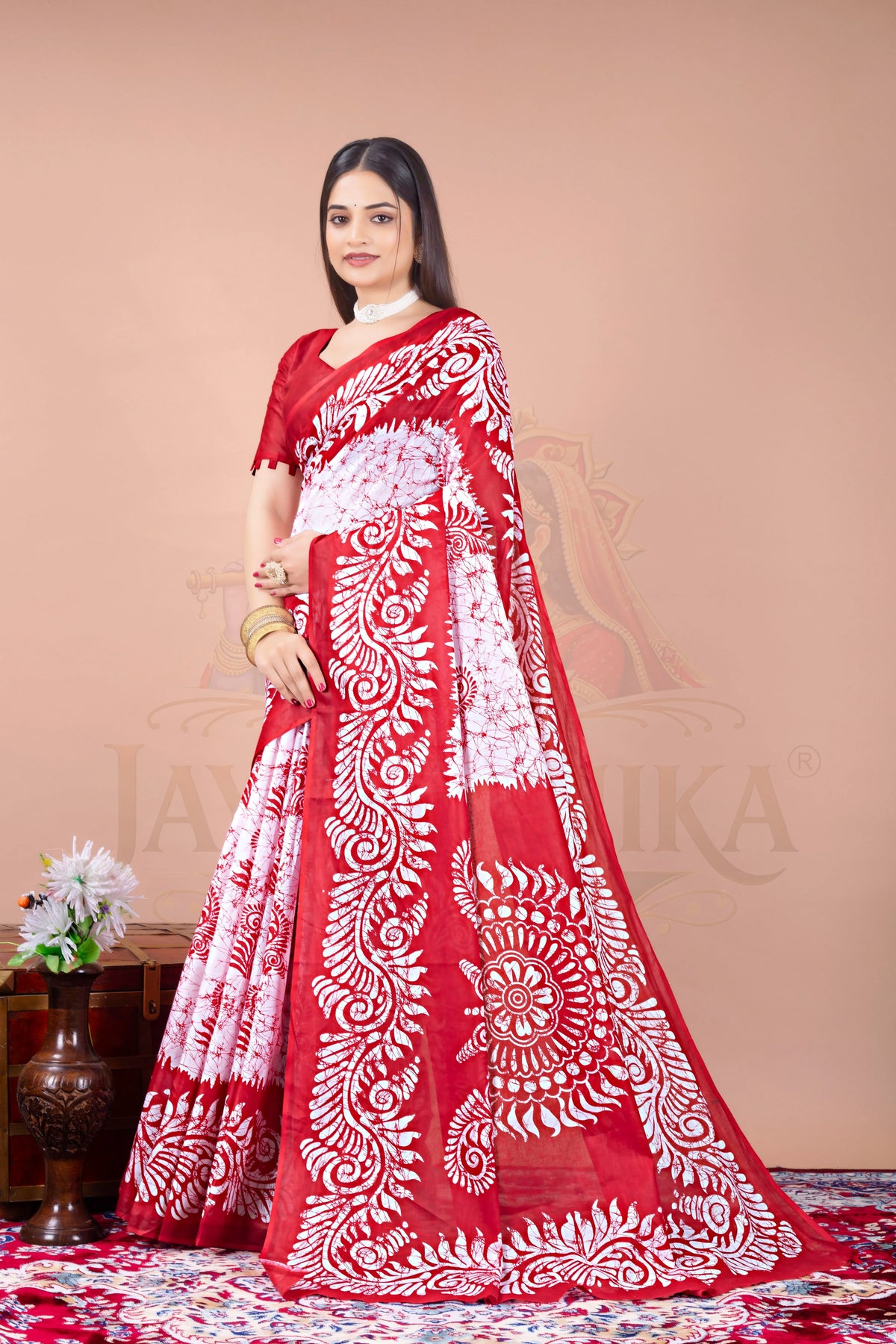 Red Batik Cotton Printed Saree Jay Radhika Textile
