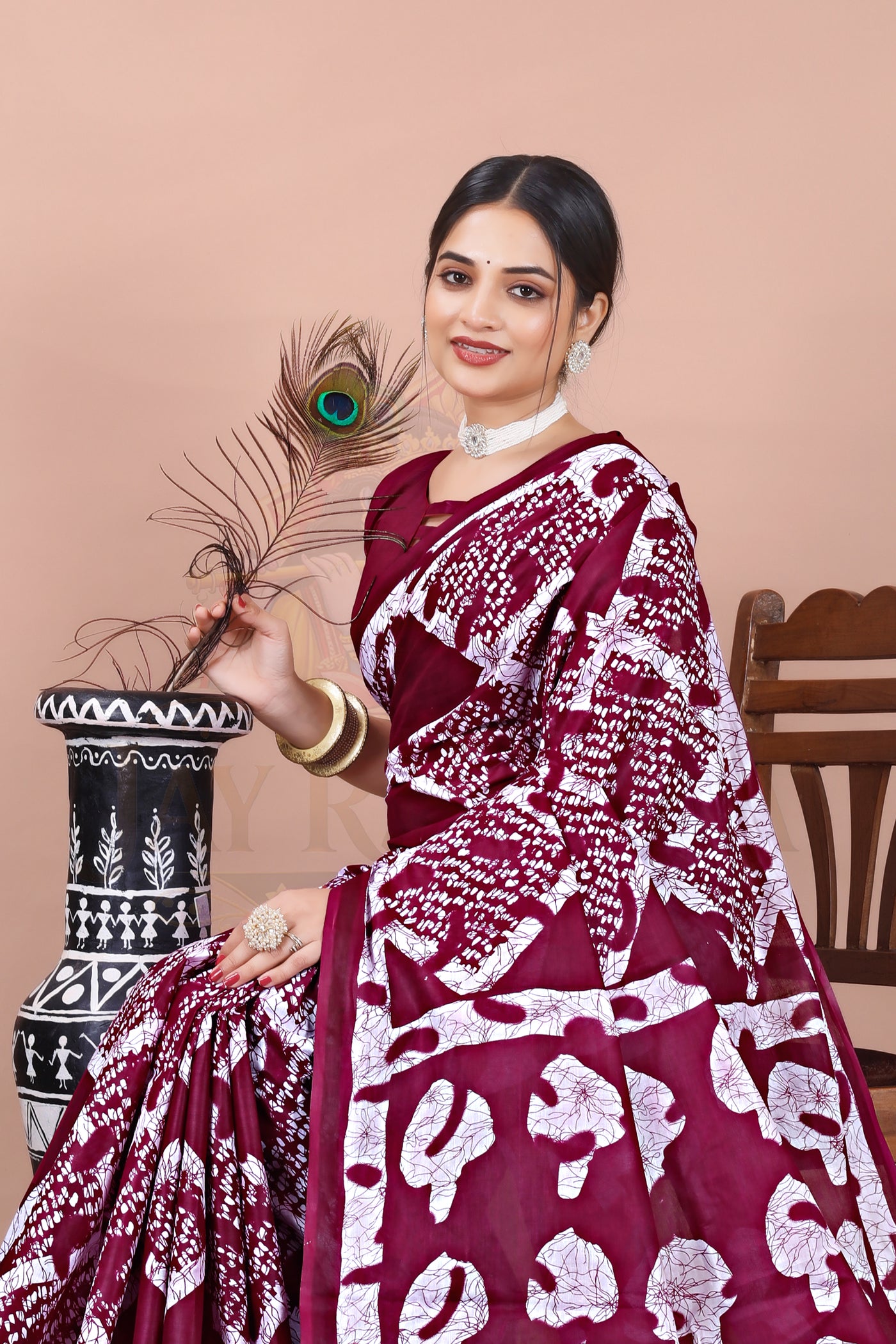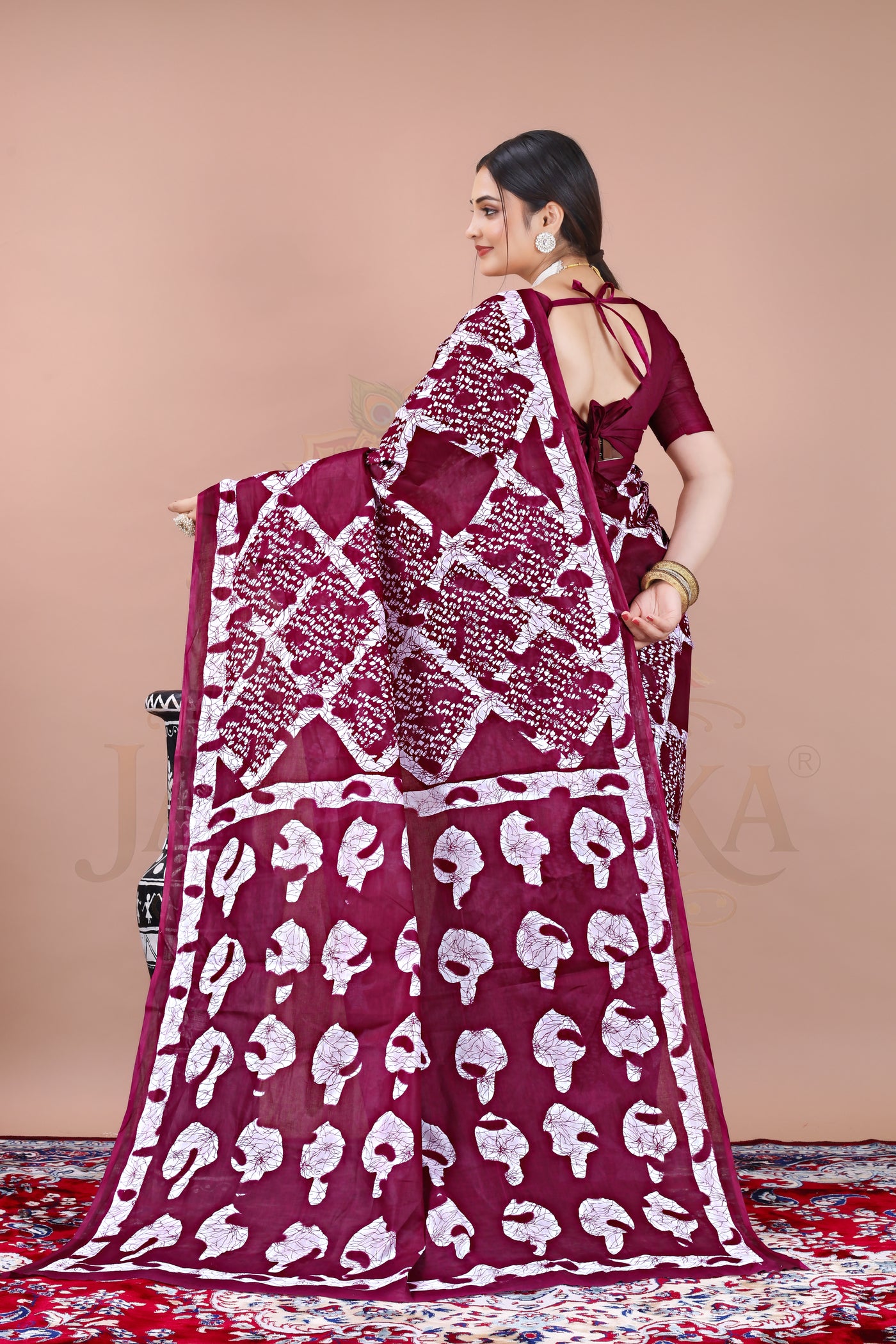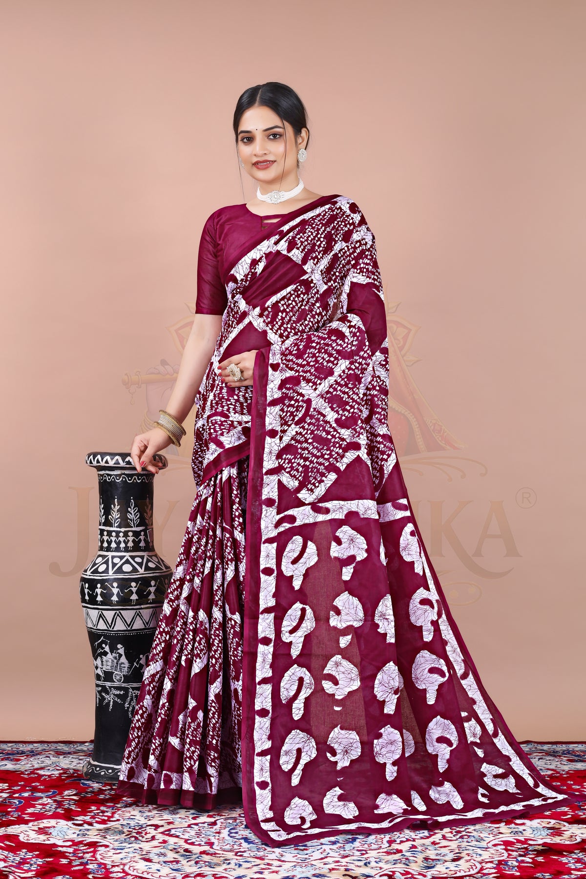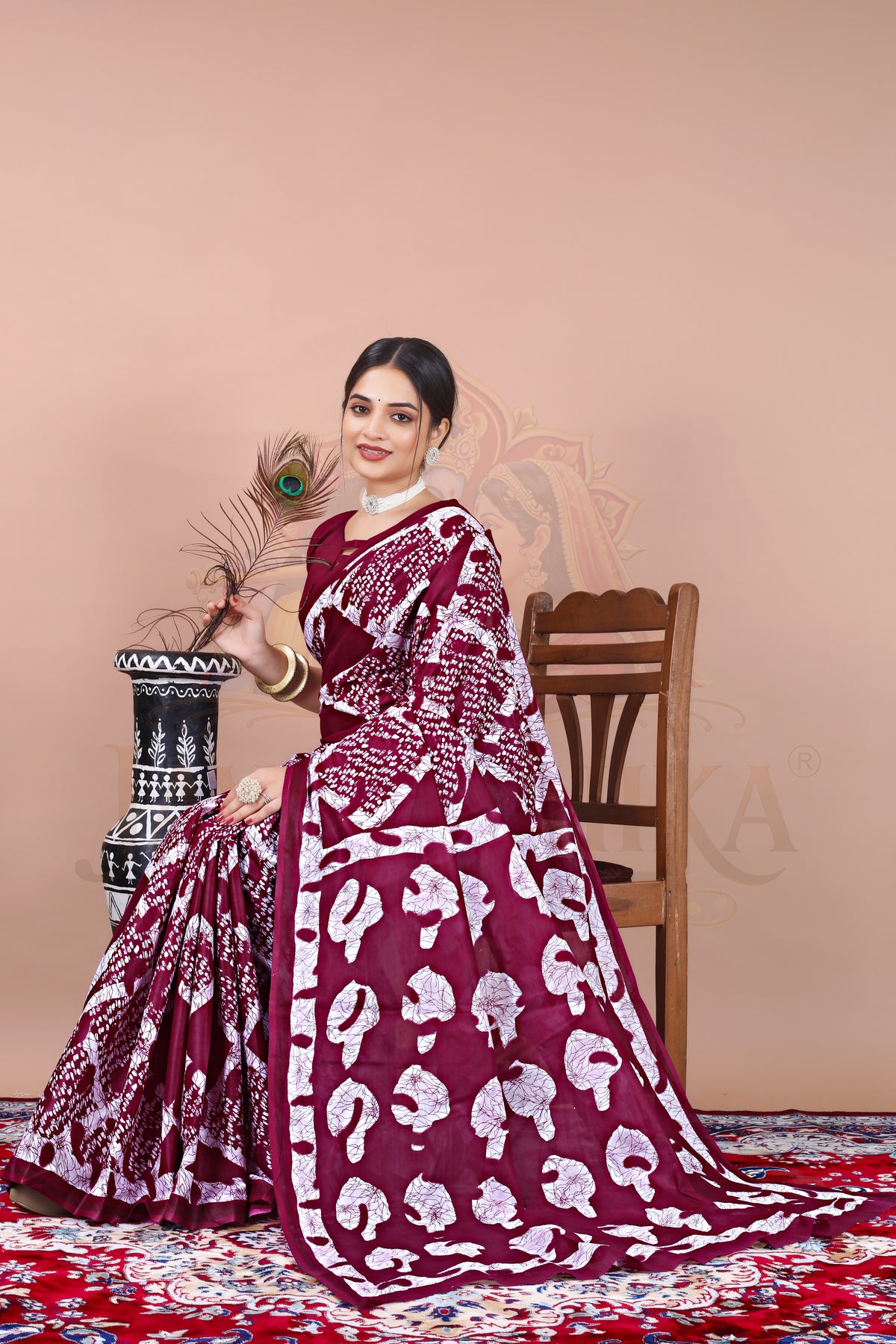 Red Batik Cotton Printed Saree Jay Radhika Textile